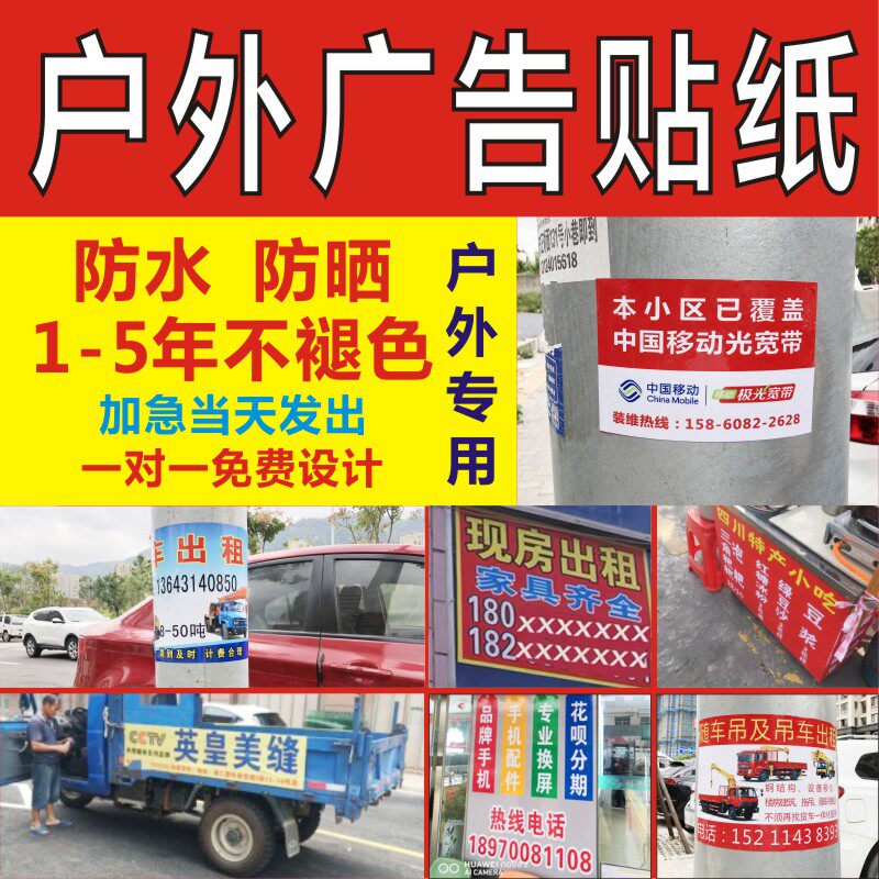 PVC self-adhesive outdoor small advertising poster sticker custom customized waterproof sunscreen adhesive self-adhesive wall sticker label
