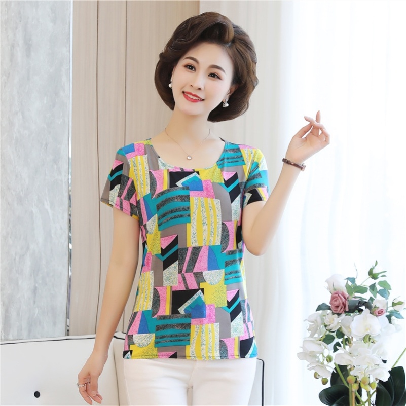 Short sleeve t-shirt loose large-yard tops new ice-wire shirt shredded flower mom clothes middle-aged old women summer