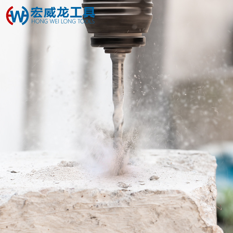 Cross electric hammer drill bit cement wearing wall round shank turning head over wall lengthened square handle Four pit concrete perforated impact drill