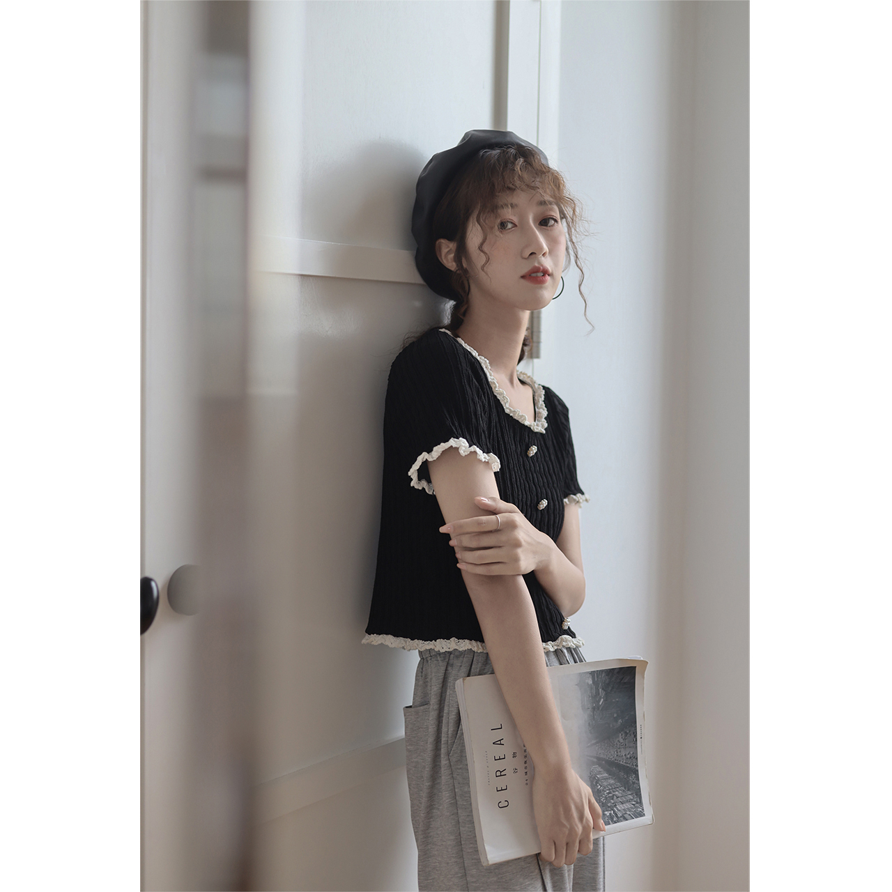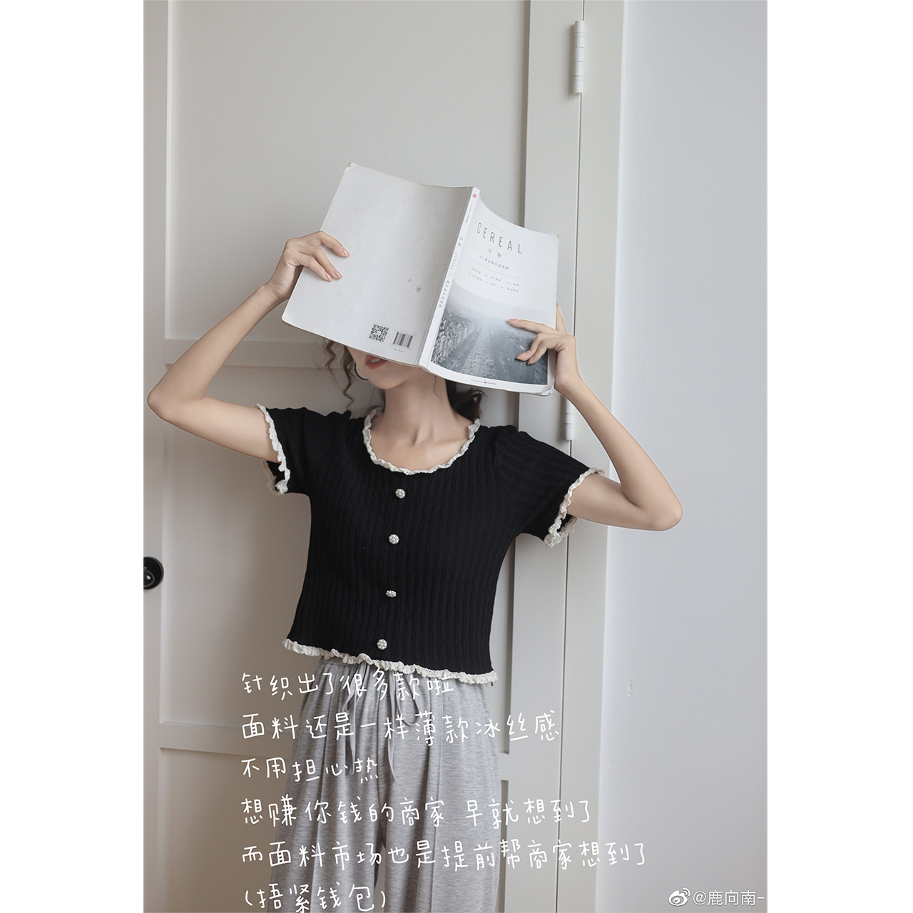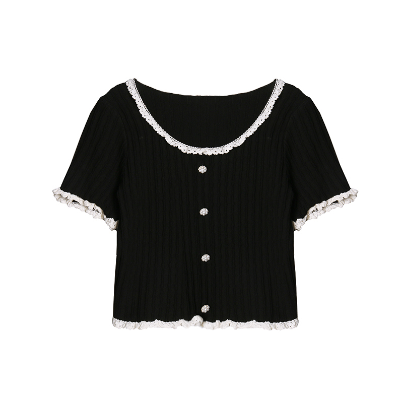 Deer to the south black short sleeves T-shirt female short Knitted Sweatshirt Summer Thin blouses 2022 New undershirt