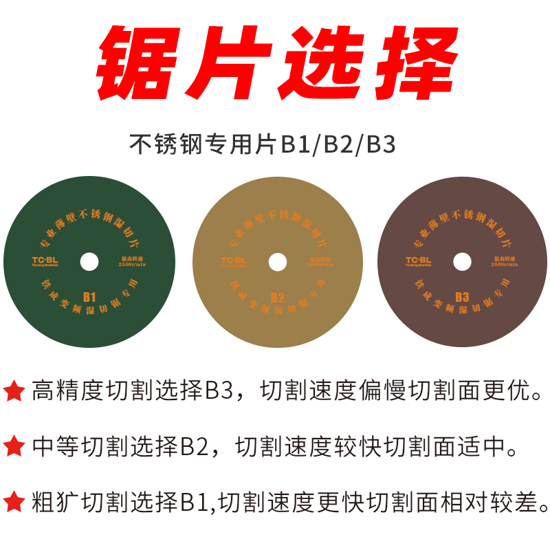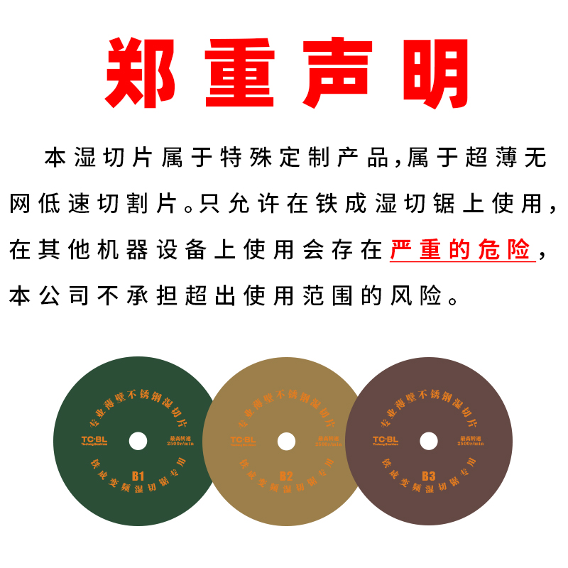 235 stainless steel wet slice B1 (15 piece pack) 235 stainless steel wet slice B2 (15 piece pack) 235 stainless steel wet slice B3 (15 piece pack) 305 stainless steel wet cut saw B110 piece pack) 305 large stainless steel special piece B2 (10 piece pack) 305 large stainless steel special piece B3 (10 piece pack)