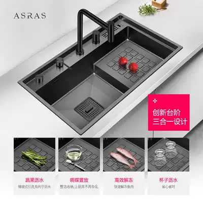 Arthas 304 stainless steel black nano stepped hand sink washing basin high and low sink large single sink