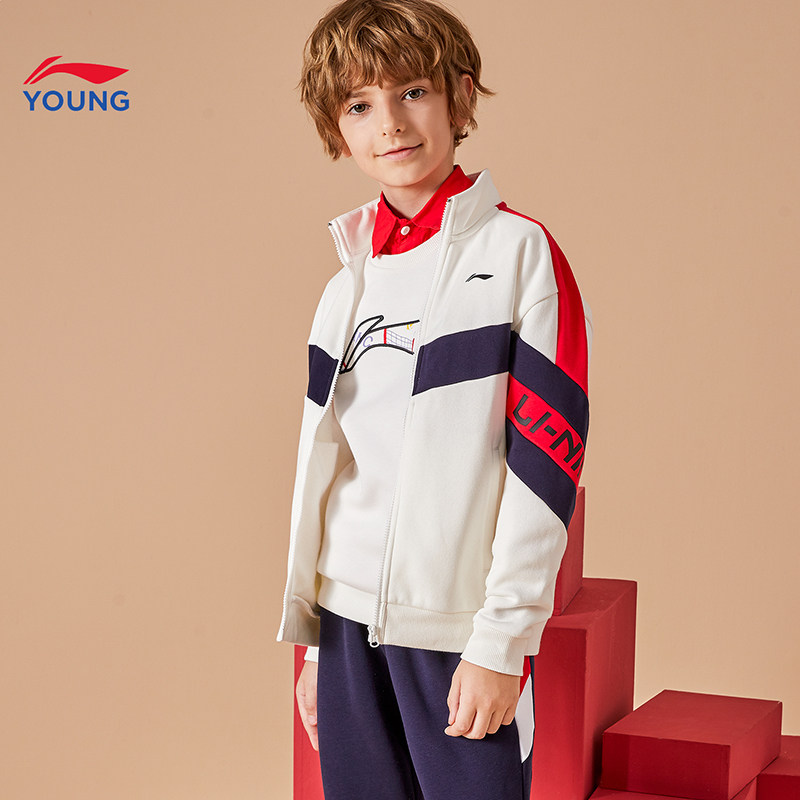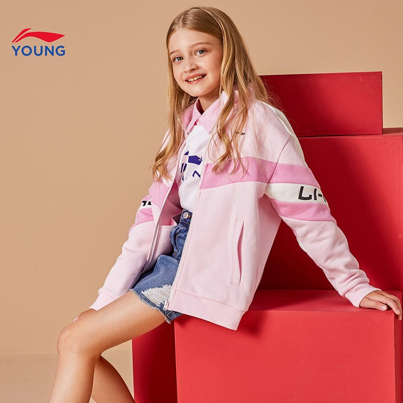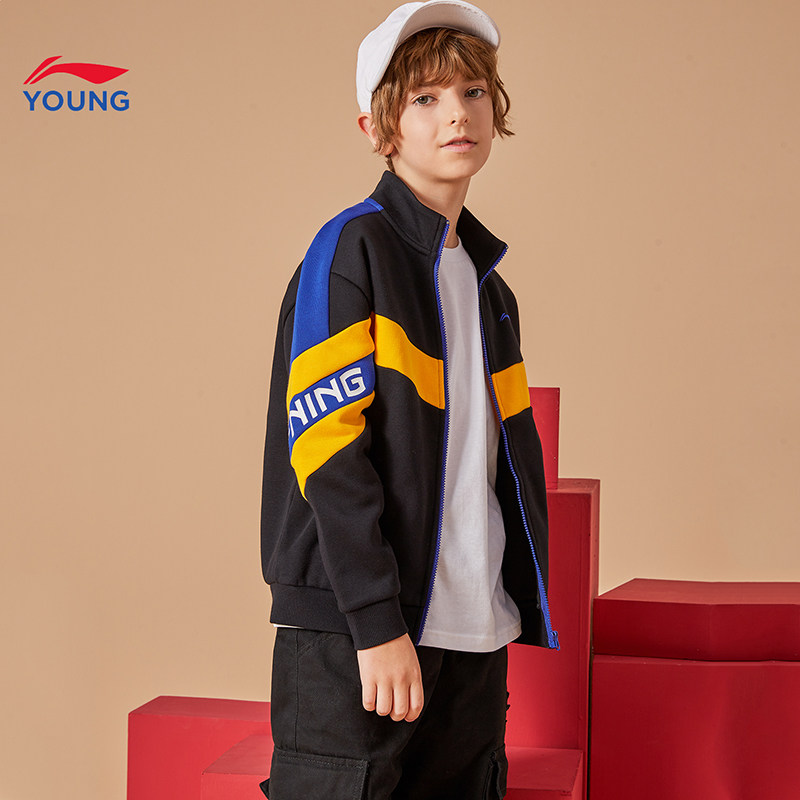Li Ning children's clothing vests for men and women, children's official new cardigan long sleeve jacket stand neck sportswear