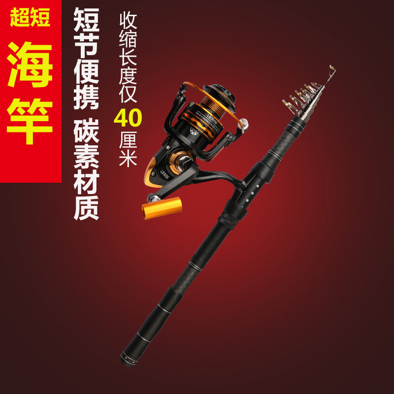 Carbon ultra-hard small sea rod mini short section sea rod throwing rod throwing rod set pocket sea rod portable long shot with fishing rod