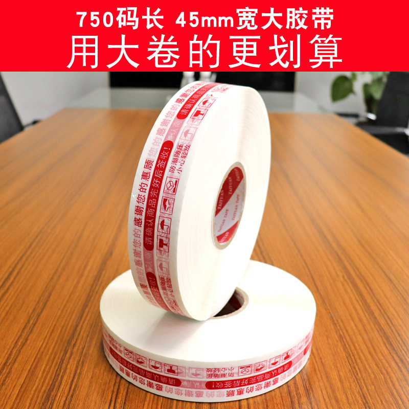 Shuangcheng intelligent Automatic sealing machine sealing carton tape 750 yards 4.5cm cm wide machine with oversized roll thick white background red letter warning words glue paper is suitable for automatic baler