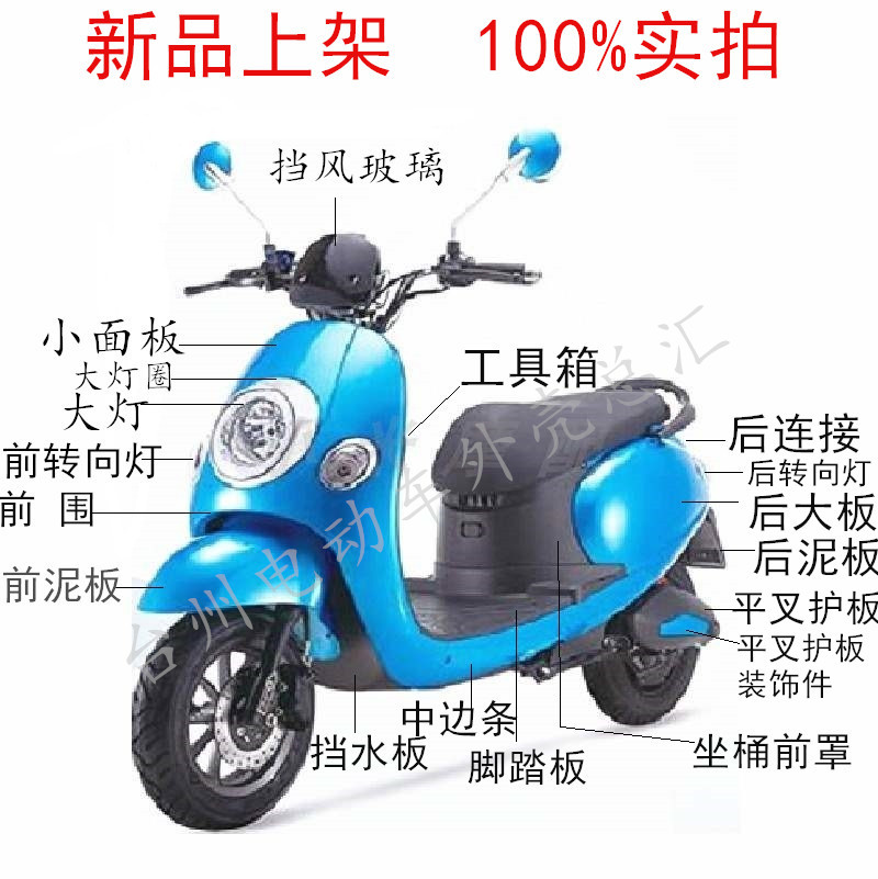 Front wall small panel Front mud plate Front and rear middle side strip Rear large plate Rear connection toolbox Toolbox door foot pedal water plate frame bottom plate seat bucket front cover seat bucket rear mud plate flat fork guard flat fork guard decoration living room tail light