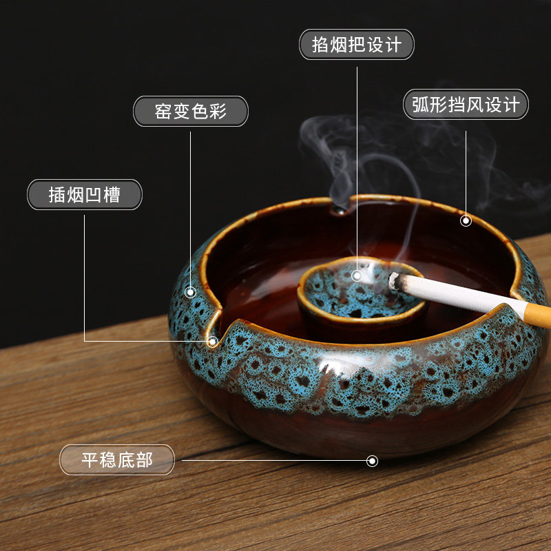 Light luxury new Chinese style ceramic ashtray office creative personality trend home living room tea table advanced sense ashtray