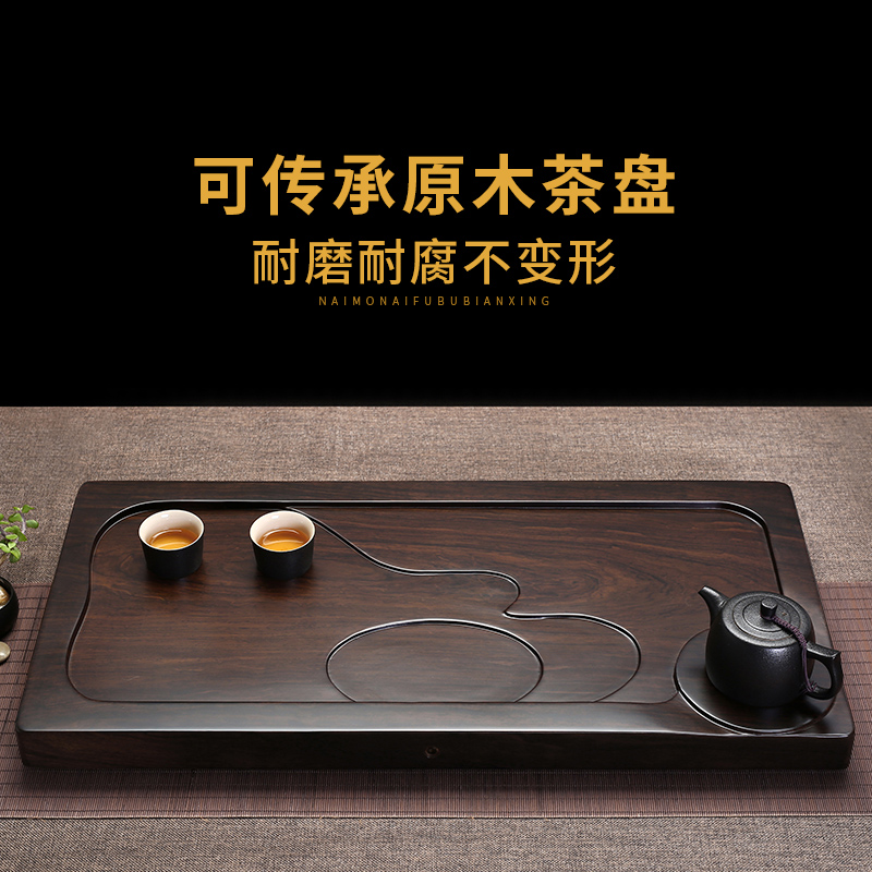 The whole black sandalwood tea plate natural solid wood tea table simple household drainage large rectangular tea tray original