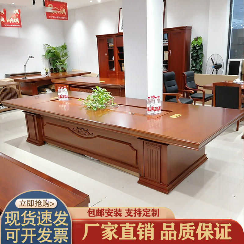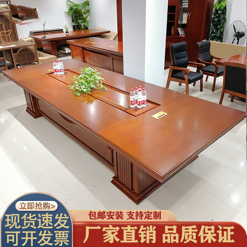Environmental protection paint long meeting table Government business procurement high-grade solid wood veneer conference room meeting table and chair combination