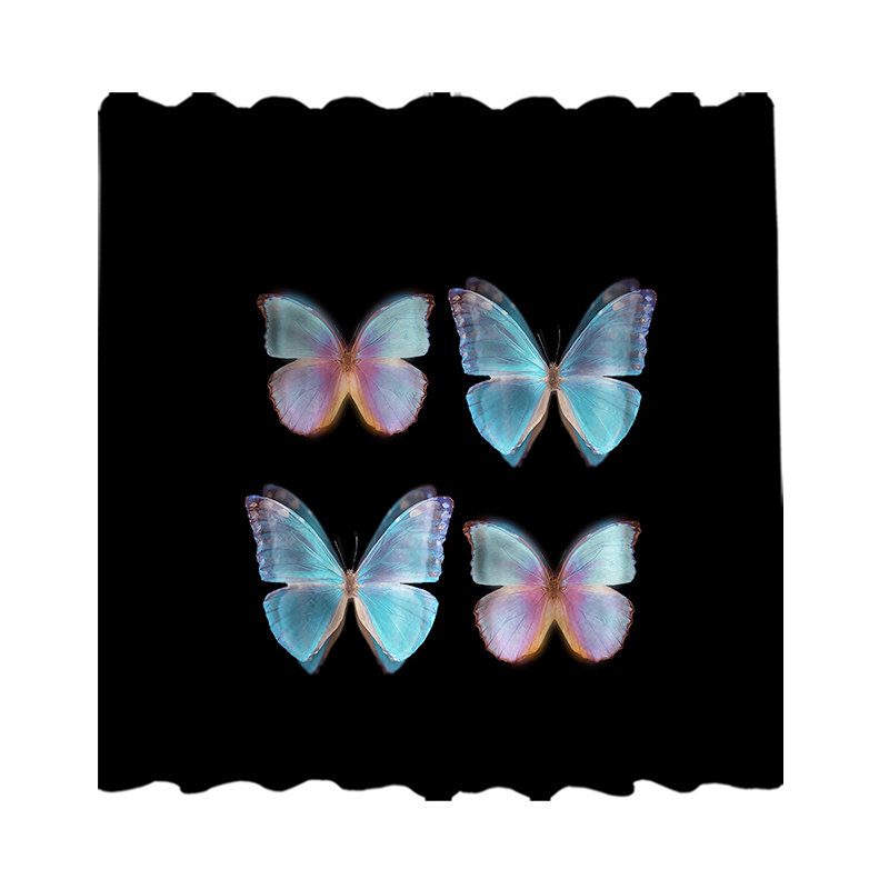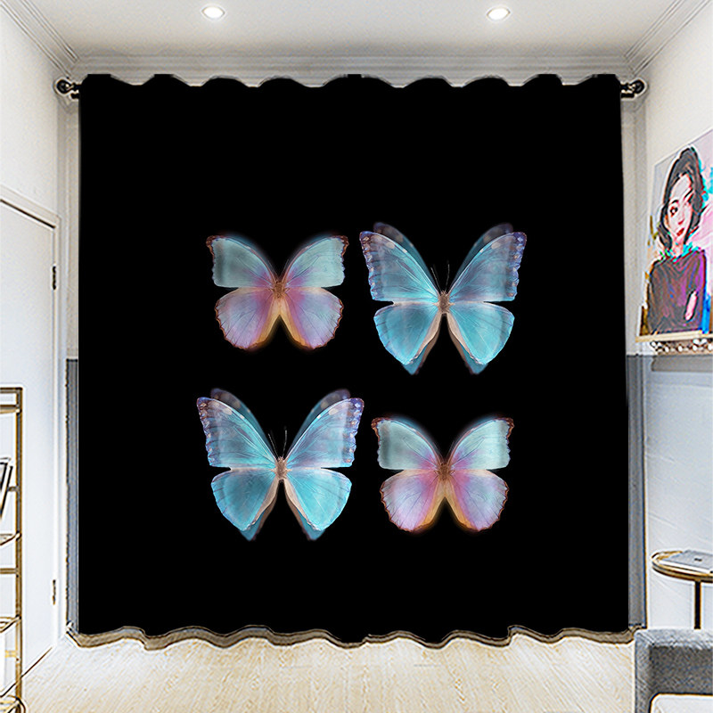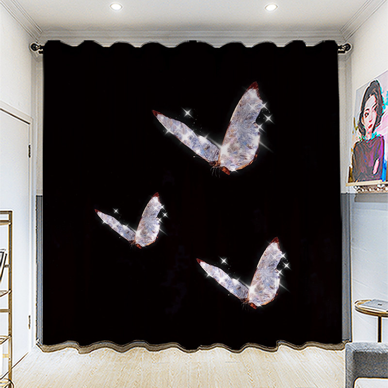 Custom long curtain coarse linen black butterfly full shading sun shade bedroom living room hook bedroom perforated curtain cloth