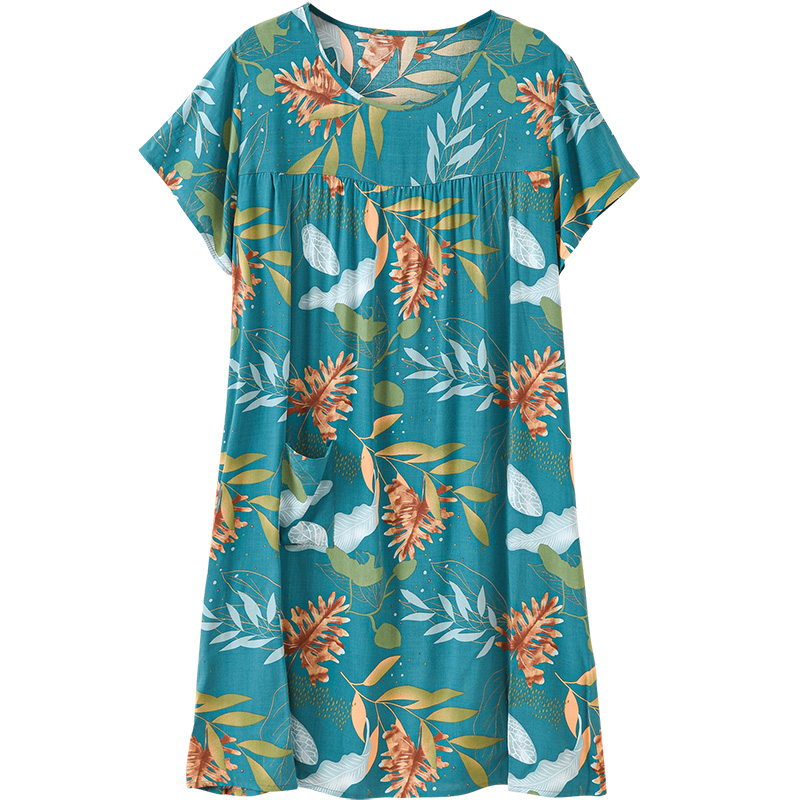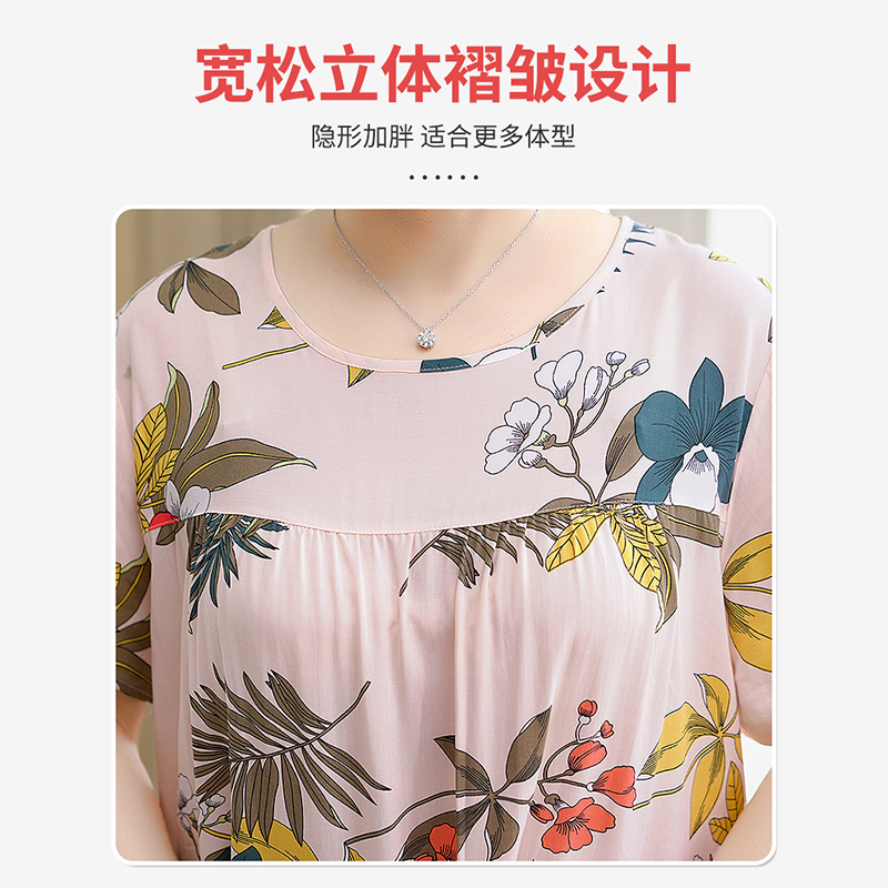 Middle-aged and elderly cotton silk nightdress women summer middle-aged mother artificial cotton pure cotton thin section large size summer home service pajamas