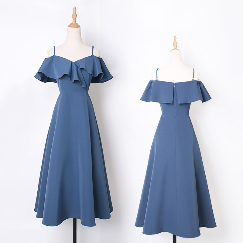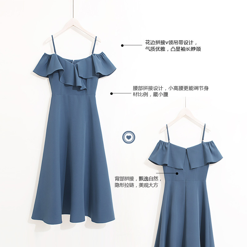 A word shoulder dress female summer French retro high waist and thin hanging knife long skirt sexy skirt