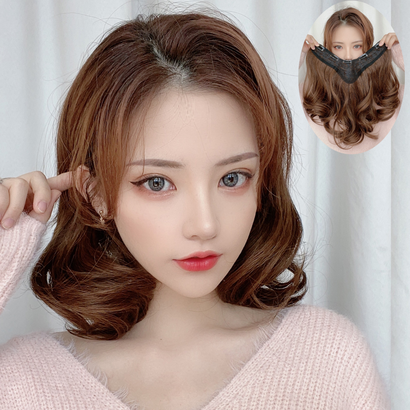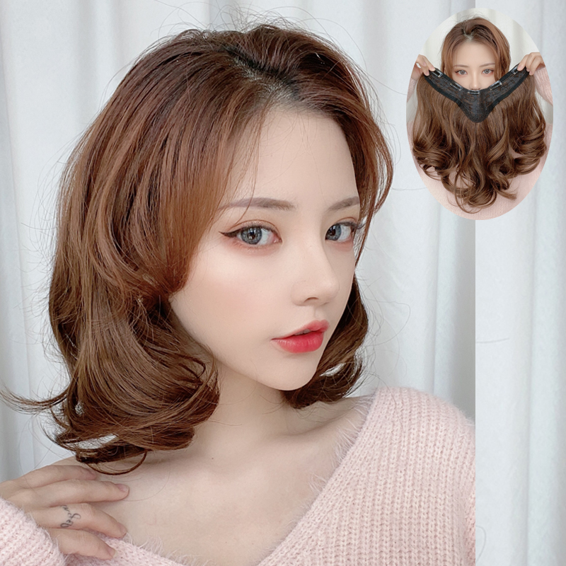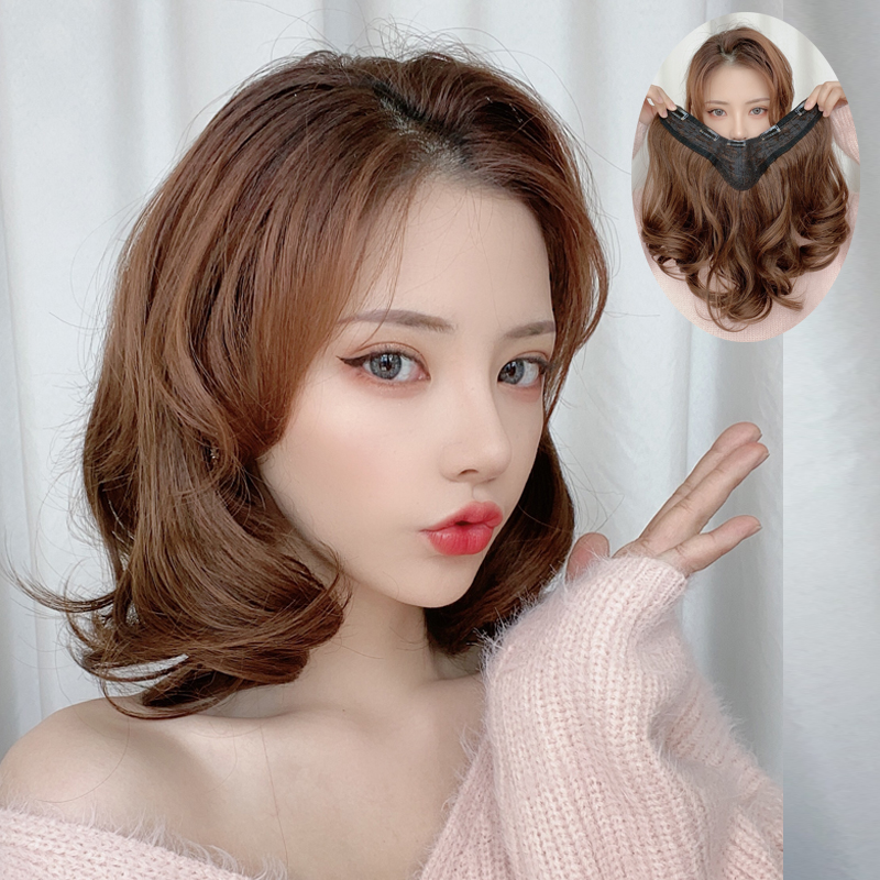 Wig women short hair piece V type large wavy short curl fluffy wig piece invisible markless hair extension wig