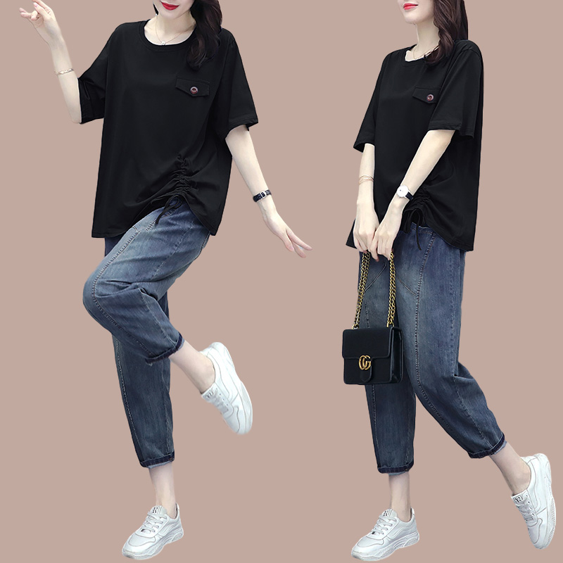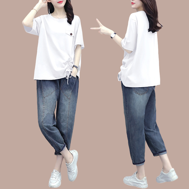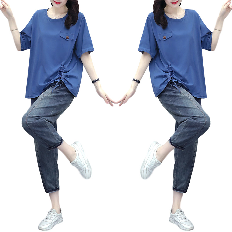 Blue (single t-shirt) white (single T-shirt) black (single T-shirt) orange (single T-shirt) jeans (single pants) blue suit (T-shirt jeans) white suit (T