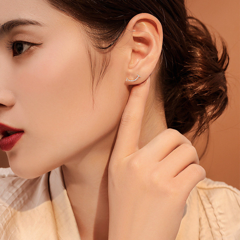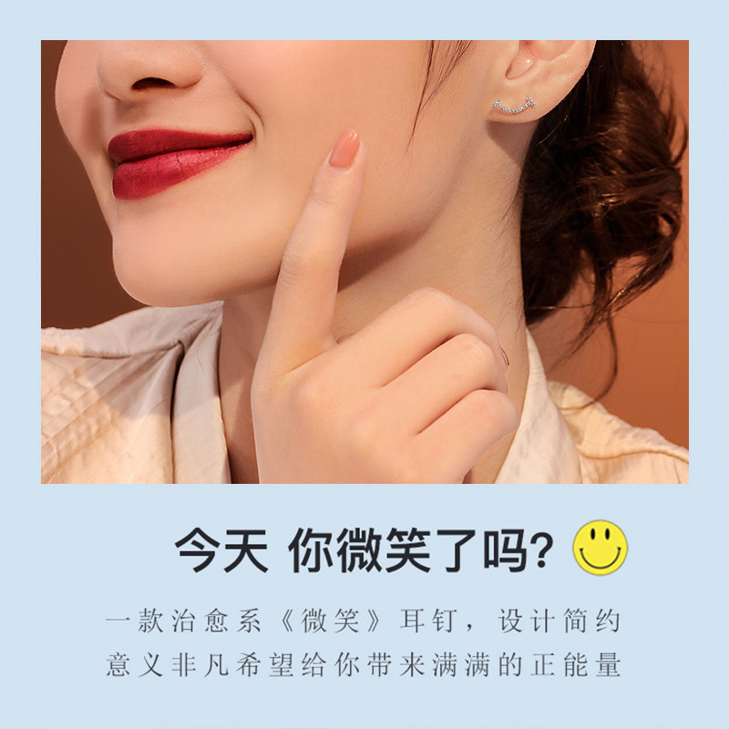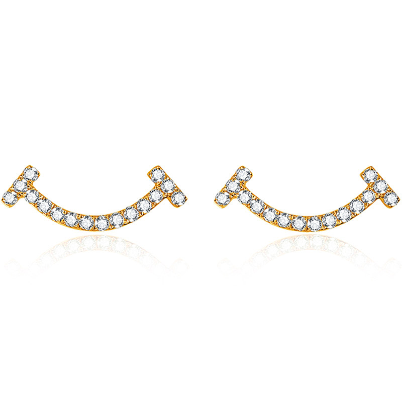 Joy Drilling Diamond Earrings Female White 18K Gold Rose Gold Diamond Earrings With Smiles Diamond Earrings Brief Earrings