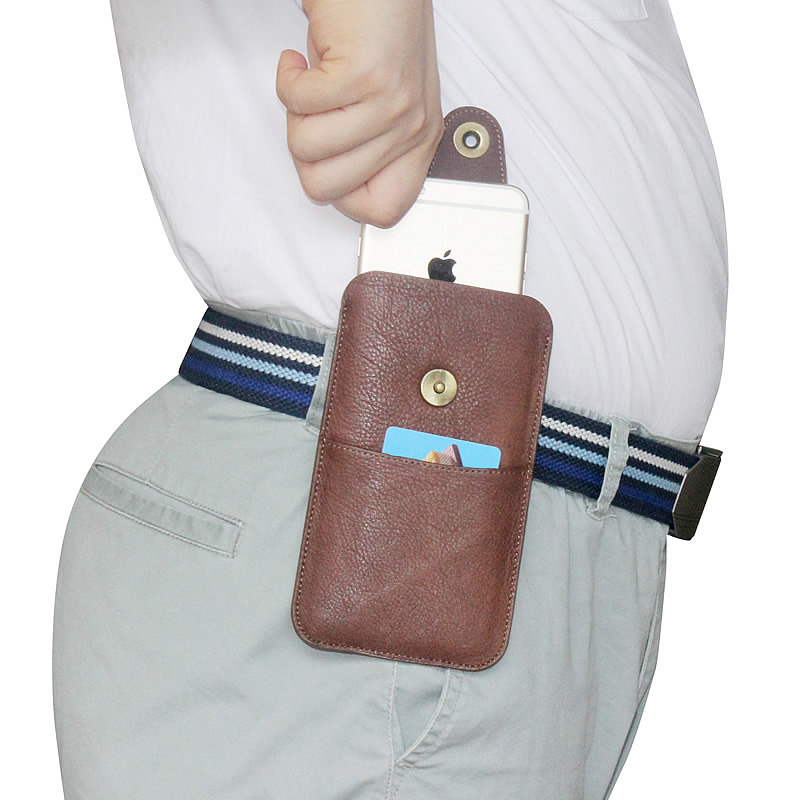 Leather mobile phone hanging waist bag male elderly middle-aged father top layer cowhide slip-on belt soft lightweight thin vertical plug