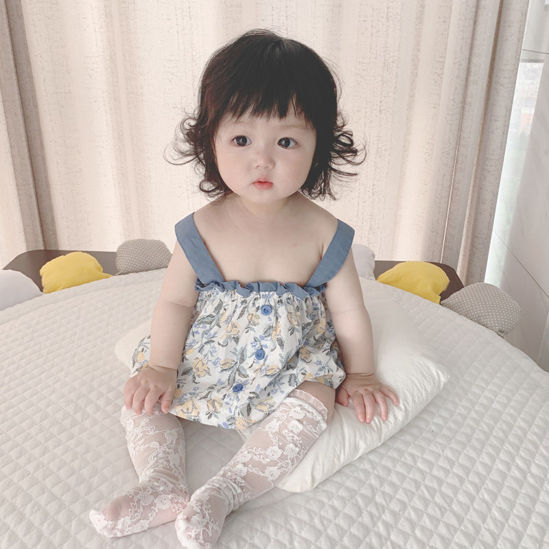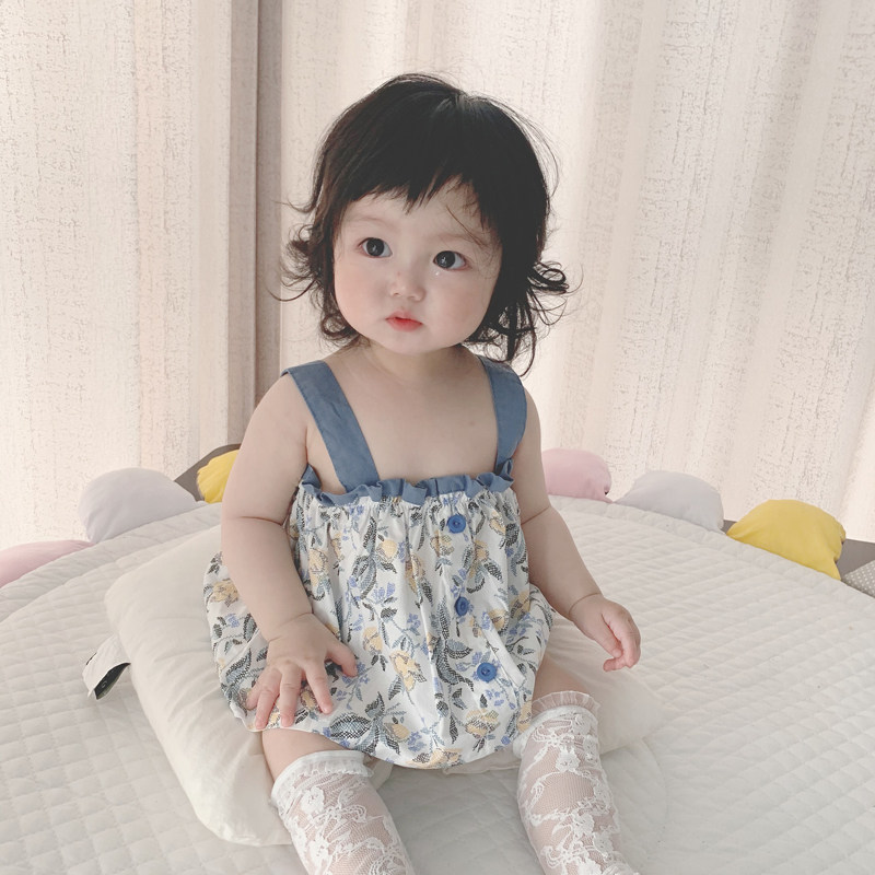 ins2022 summer new Korean version of the baby foreign style sling top big PP bread shorts girl baby 2-piece suit