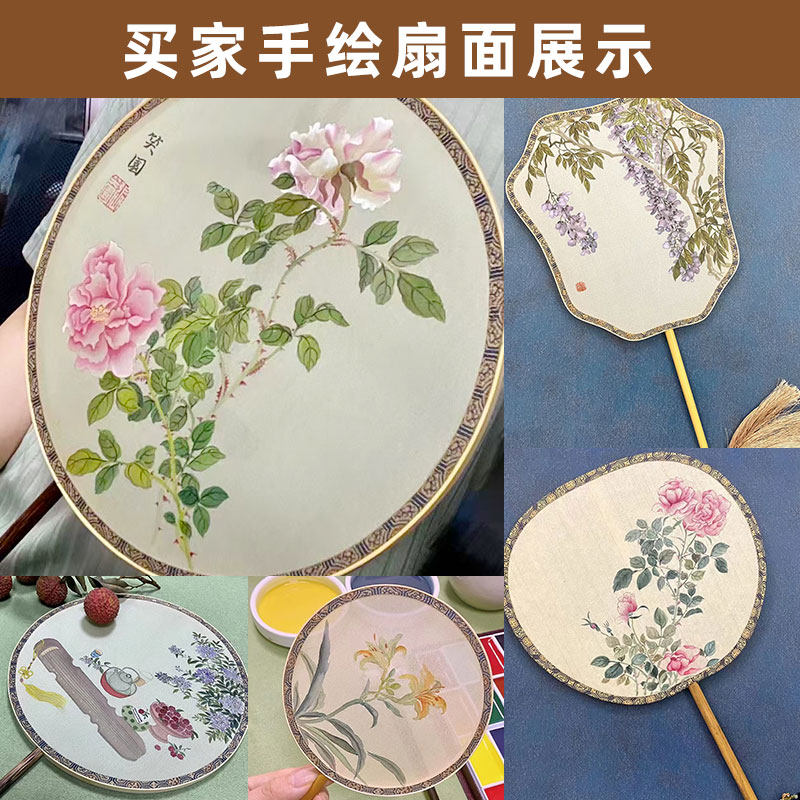 And fan blank fan Chinese palm bamboo frame painter painting painting painting silk fan handdrawn ancient style imitation fan