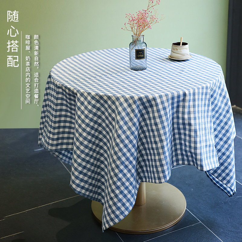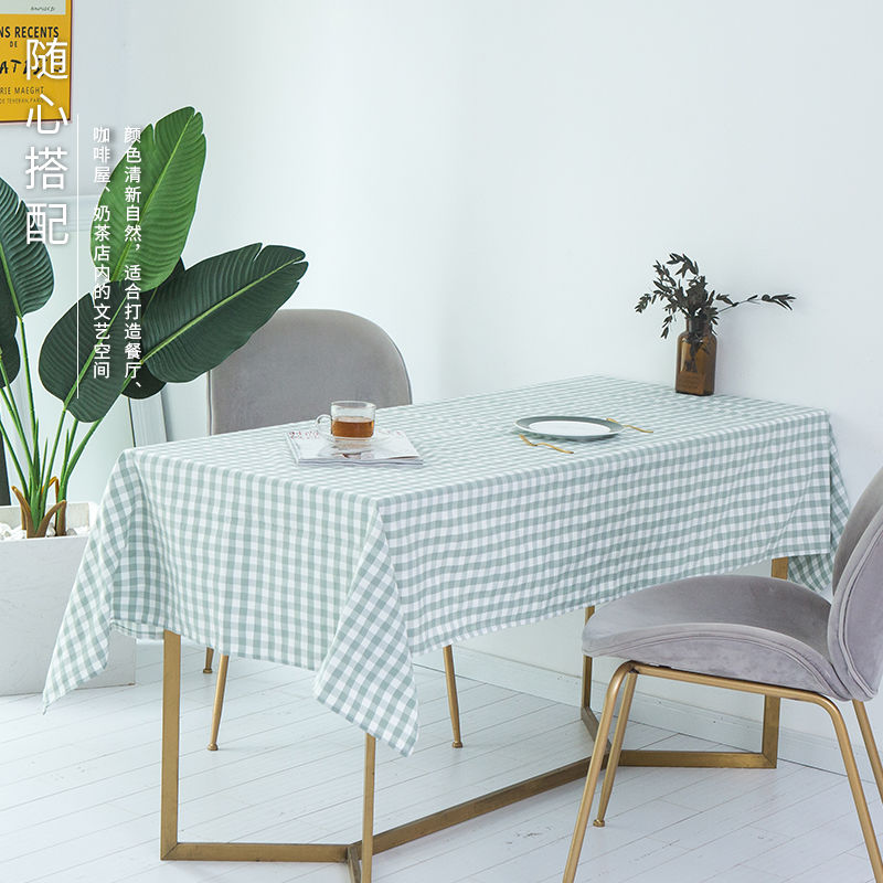 Roundtable table with the Nordic desk with red and white plate cotton linen green plate tablecloth small square red