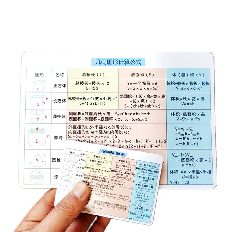 Primary mathematical formula large-plane stereographic graphics calculation area formula card unit conversion card
