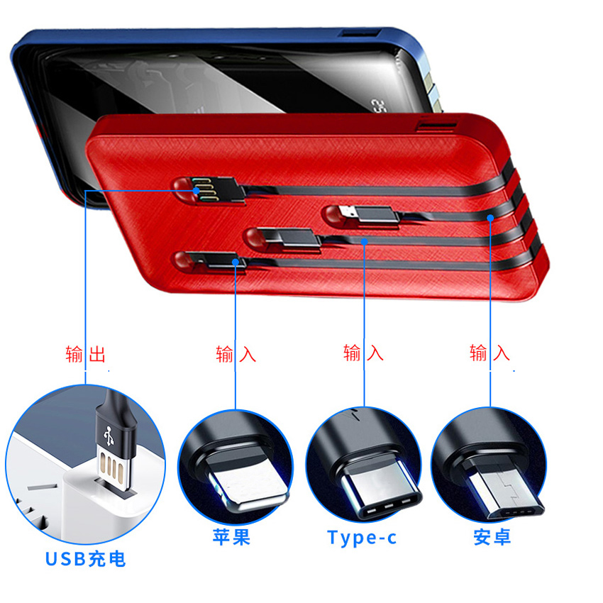 Mobile charge 10000 mA with four - wire mini - large capacity thin portable mobile phone 2 1A output power supply