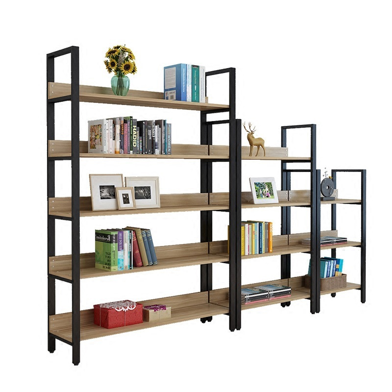 Steel wood bookshelf rack floor multi-layer wrought iron home multi-functional display cabinet Nordic study living room shelf