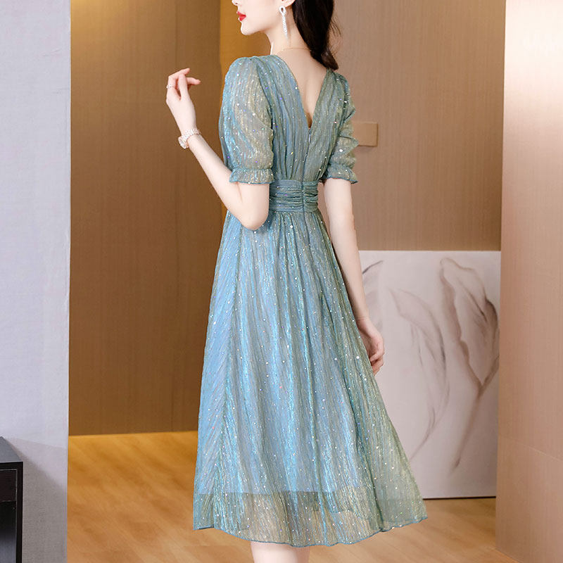 Mom acetate Ocean dress 2022 New summer middle-aged temperament Yuanyuan high-end 35-45 Women in a summer dress