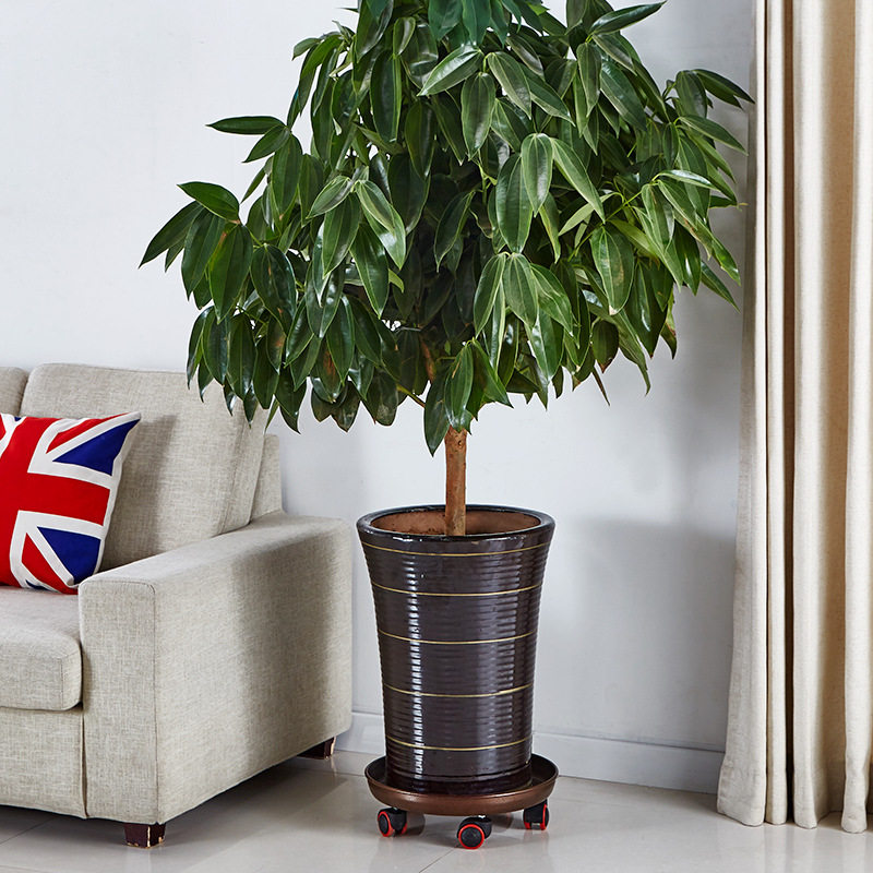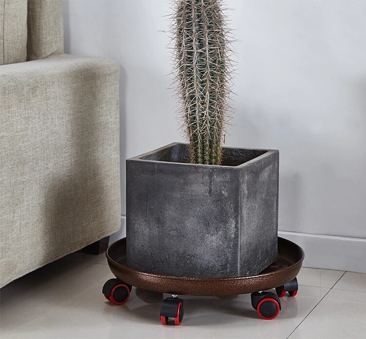 No rusting metal iron art flower pot base nursery tray round with wheel roller cushion bottom ceramic gold Ge universal wheel flower care