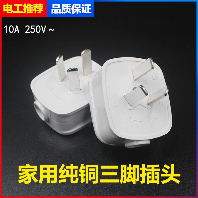 Plug 10A 250V pure copper high-power household industrial three-pin power supply three plugs