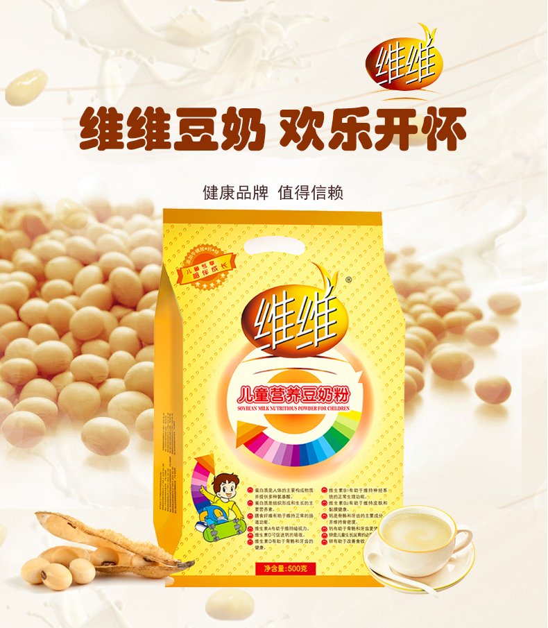 Weiwei children's nutrition soy milk powder 500g*2 bags breakfast high calcium student youth instant soy milk brewing bag