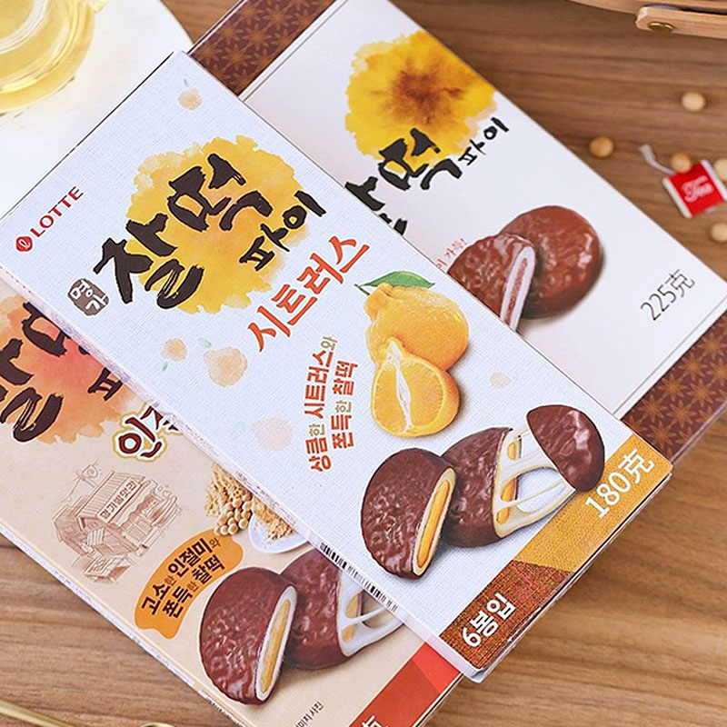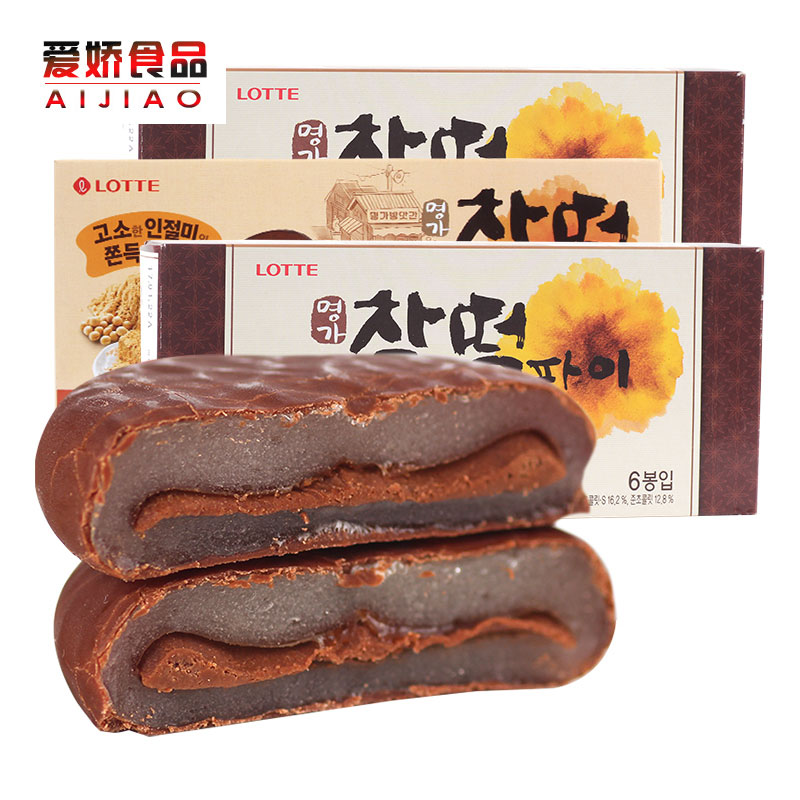 Korea imported Lotte chocolate cake pie glutinous rice ziba sandwich rice cake pie mochi office snacks