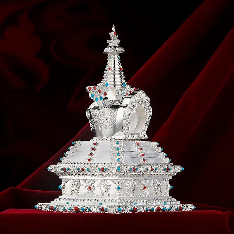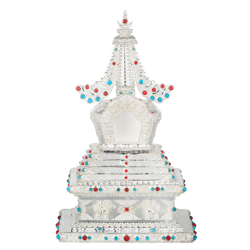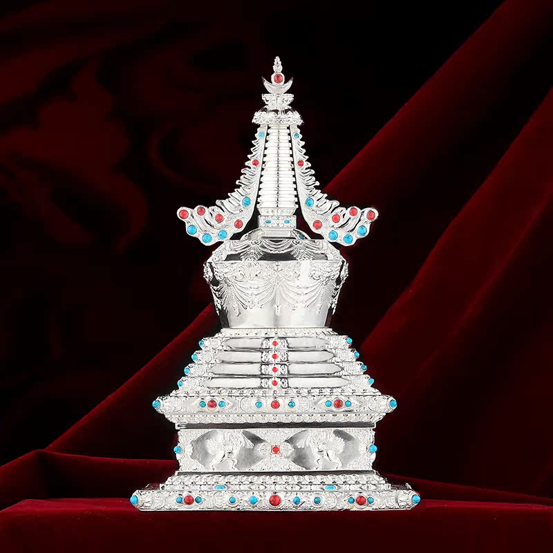 Tibetan Buddhism S999 pure silver Bodhi Tower Buddha Tower such as the Buddha Tower Home Swaying pieces dedicated to the Pagoda 21cm
