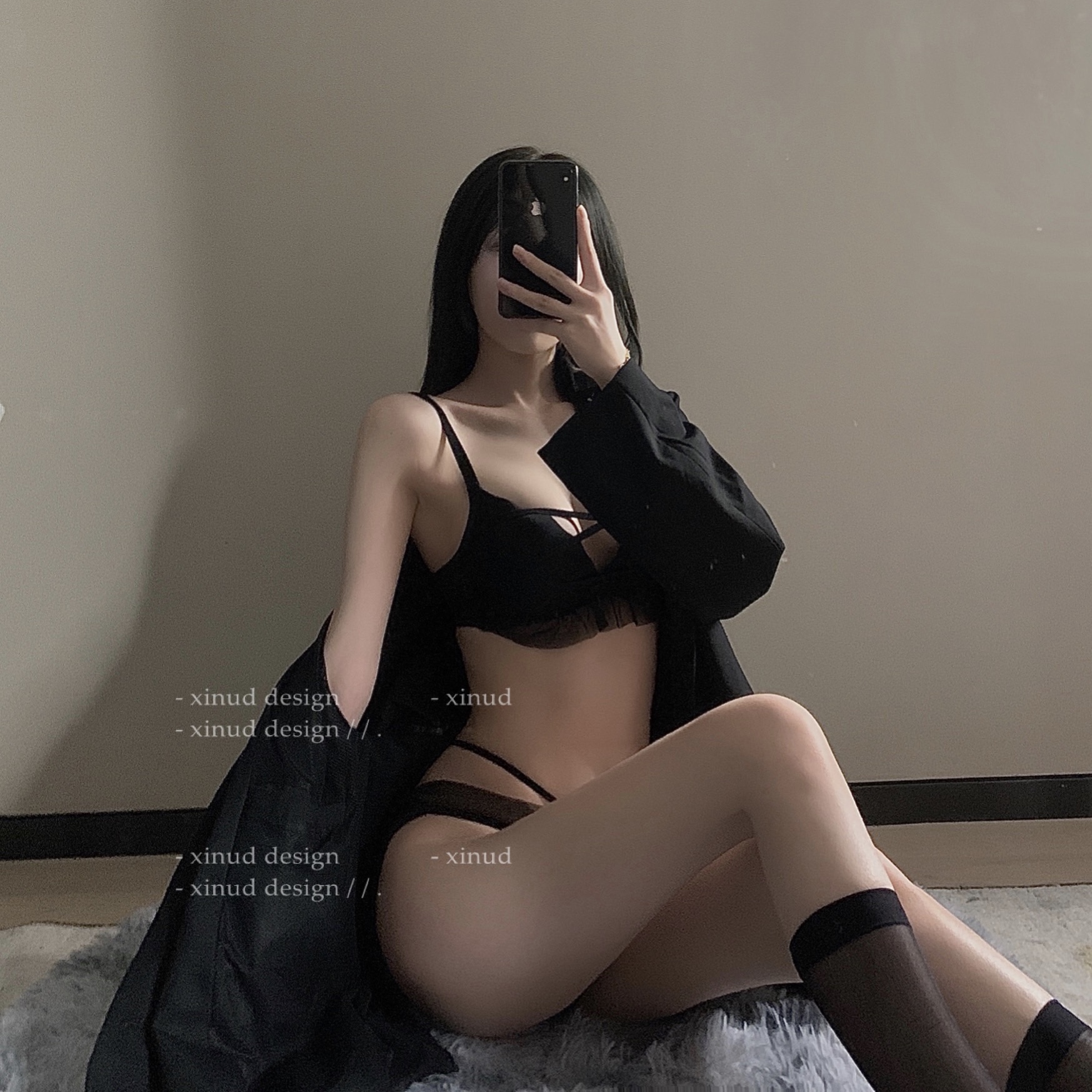 "LA" gather mesh sexy lace lace lace solid color lingerie set women's thin beautiful back women
