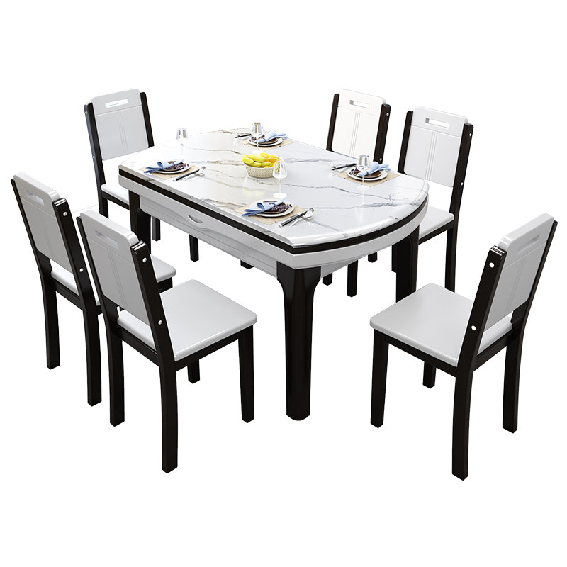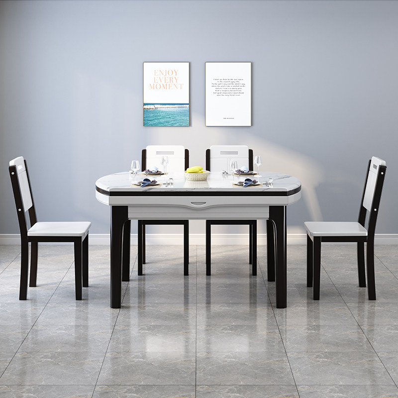 Marble dining table and chair combination modern minimalist solid wood telescopic folding small apartment household glass steel stone dining table