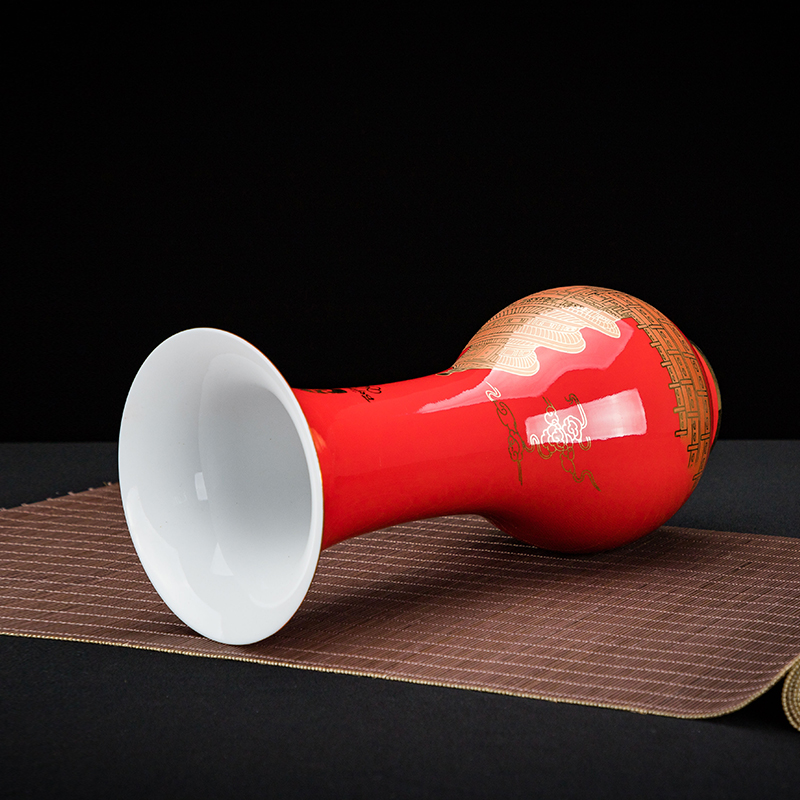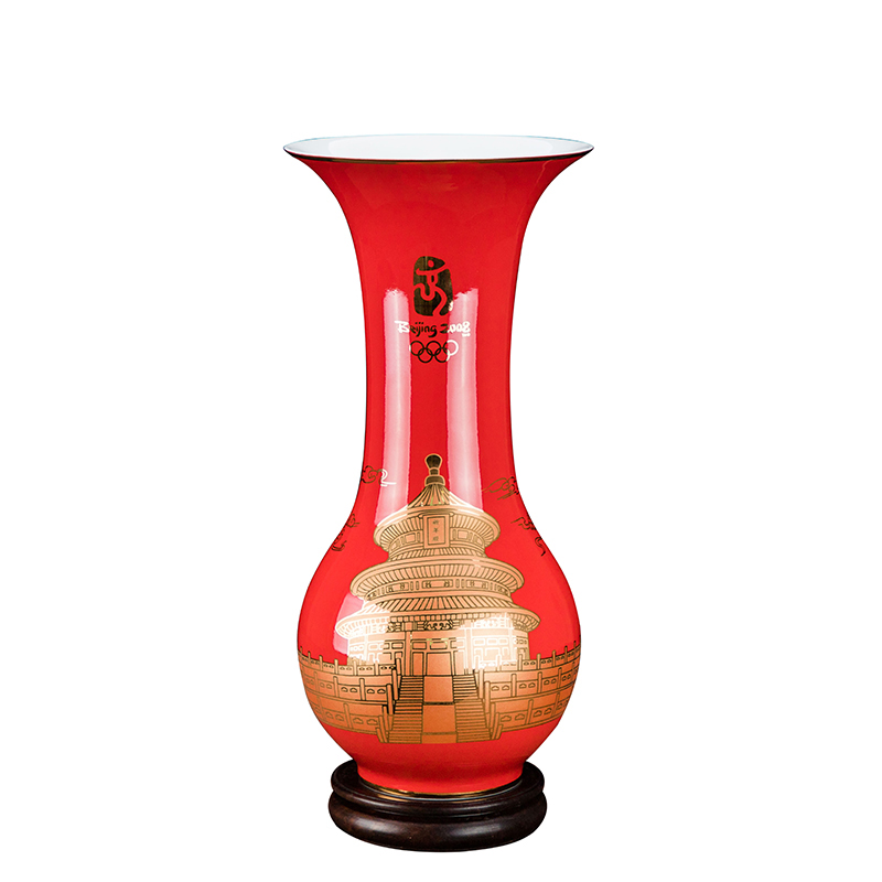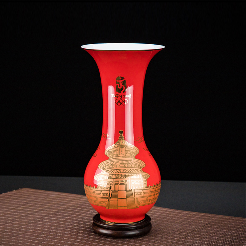 Department of the Department 2008 Beijing Olympic Games Gift porcelain red porcelain Tiantan Modern decorative table surface vase