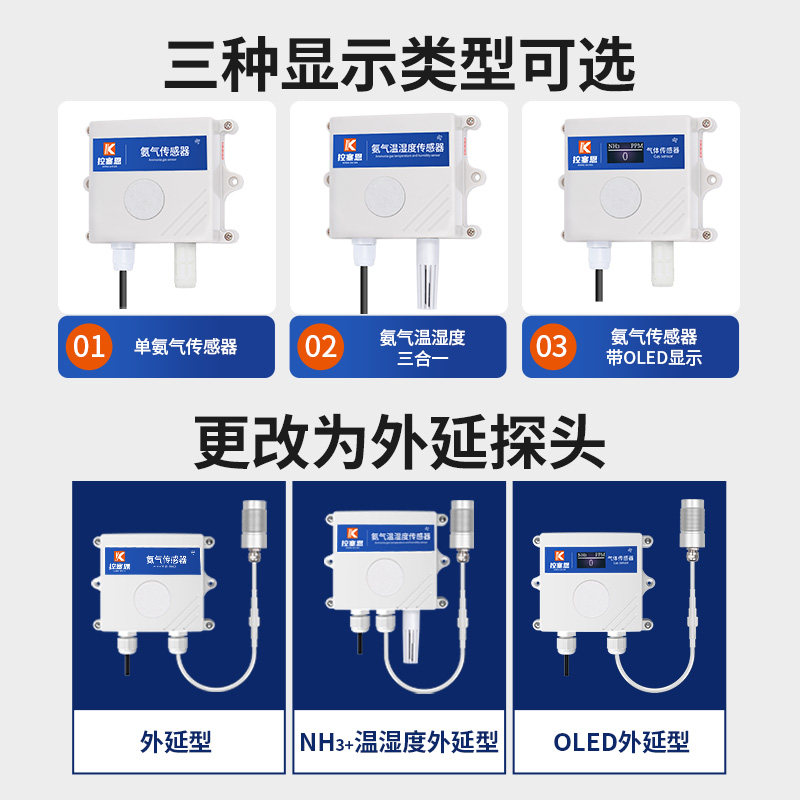 Ammonia sensor high-precision industrial farming alarm RS485 analog output NH3 gas concentration detector