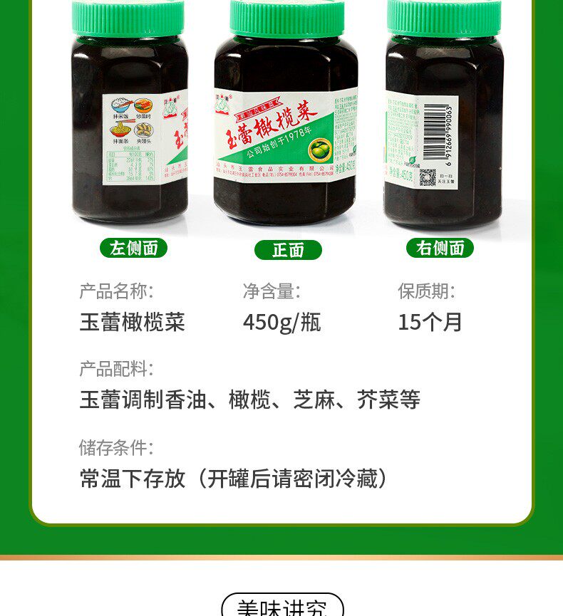 Yulei olive vegetable 450g Chaoshan specialty pickles authentic Hong Kong appetizers mustard pickles mixed noodles bibimbap