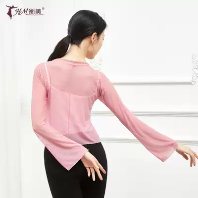 Classical dance practice clothes Female adult trumpet sleeve art test national dance body rhyme yarn clothes mesh yarn elegant dance top