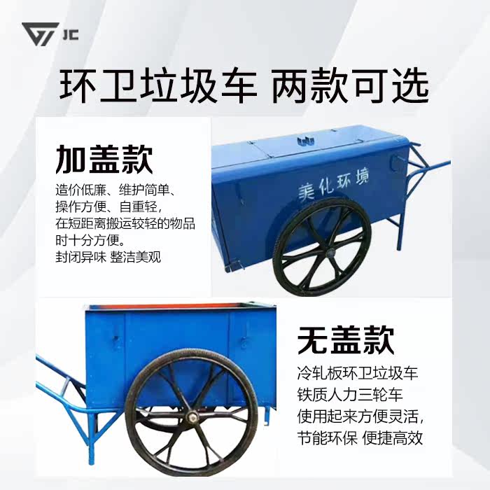 Sanitation hand-push garbage truck outdoor iron with cover manpower cleaning garbage truck community property trash can trash can