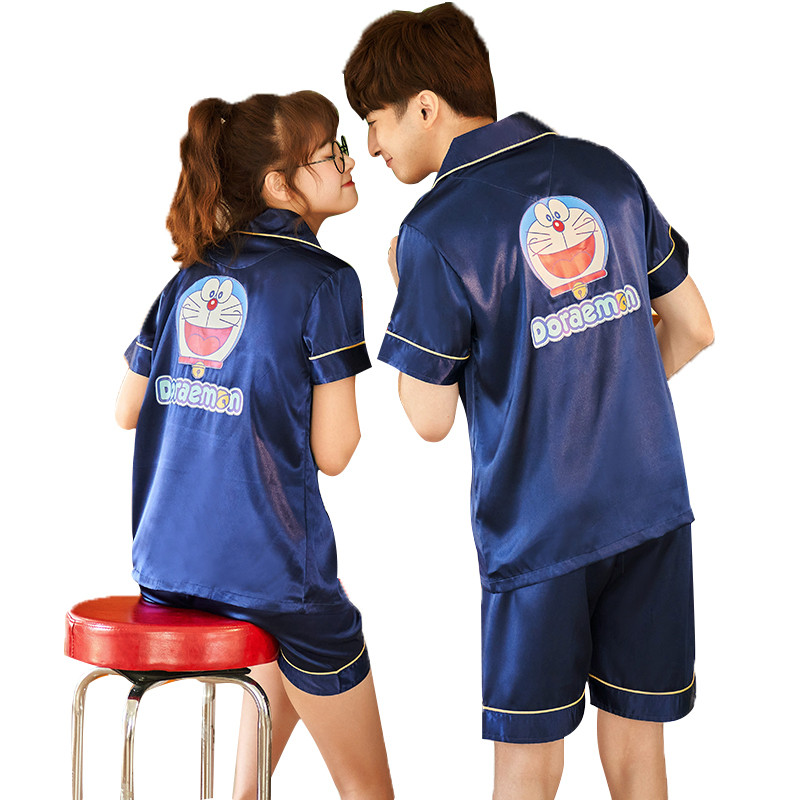Couples Pyjamas Summer Short Sleeves Thin men Summer Ice Silk Home Suits Two Style Suits of Tide Nets Red
