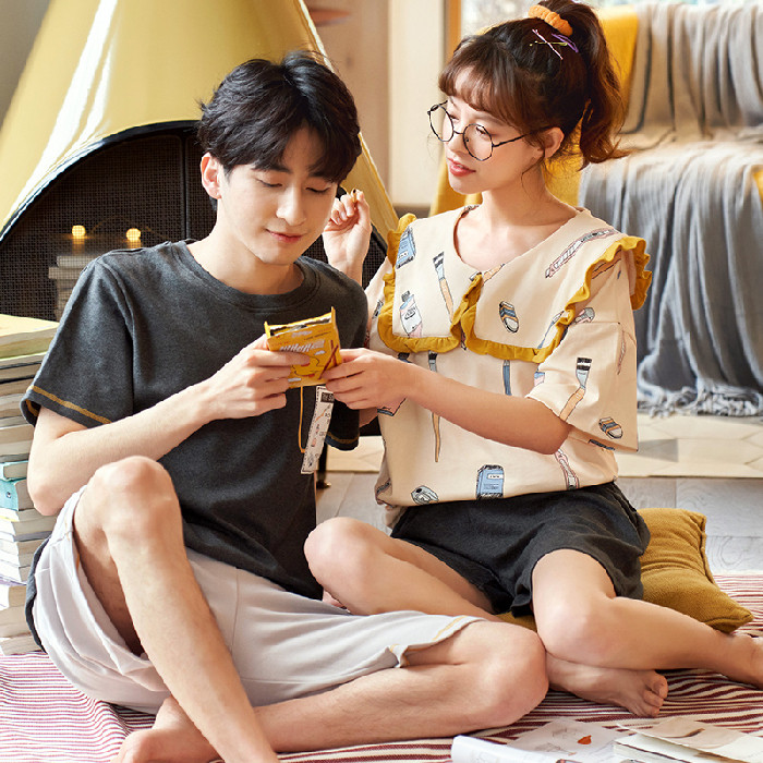Couple pajamas women's summer cotton short-sleeved thin net red ins trendy cute men's day homewear suit