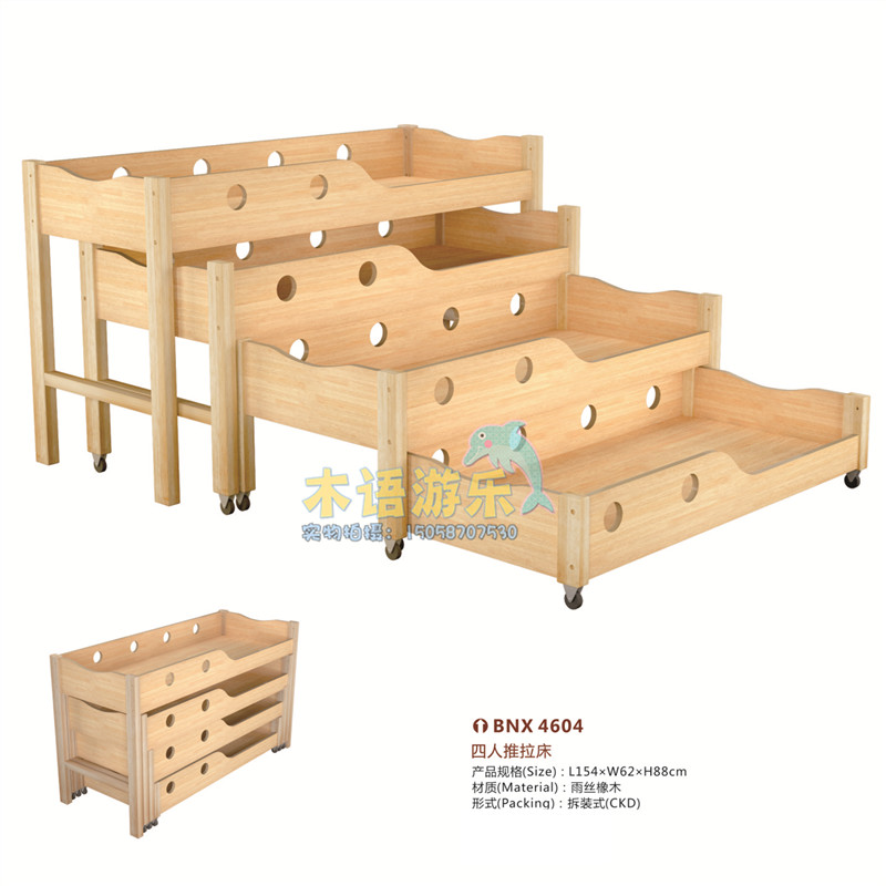 Kindergarten Solid Wood Children Baby Single Bed Four Persons Push-and-pull Bed Cartoon Car Bed Early Education Special Ostyle Small Bed-Taobao