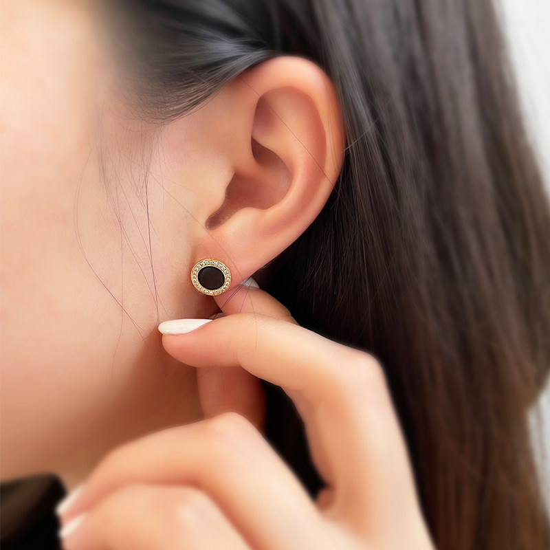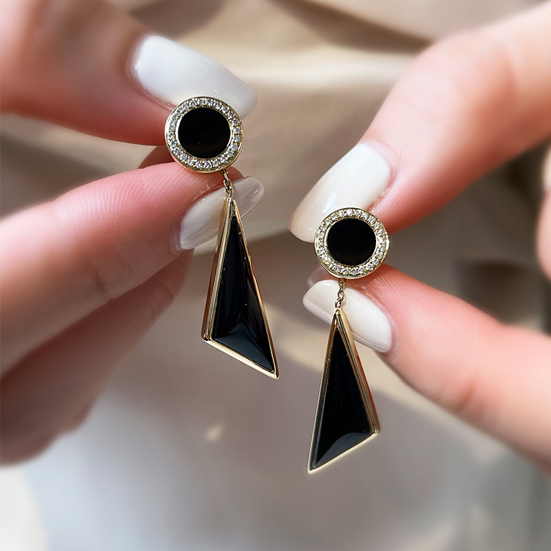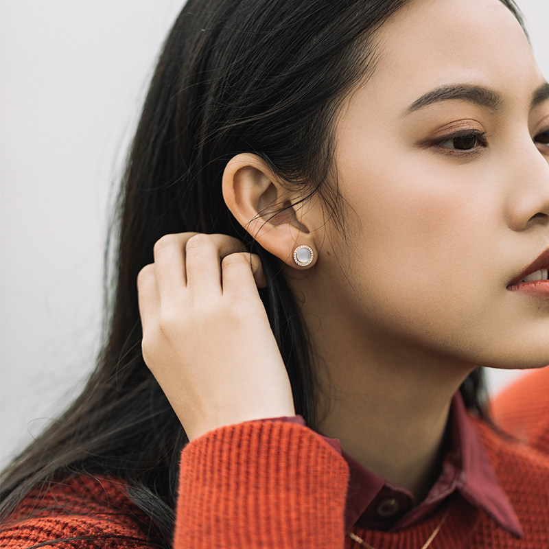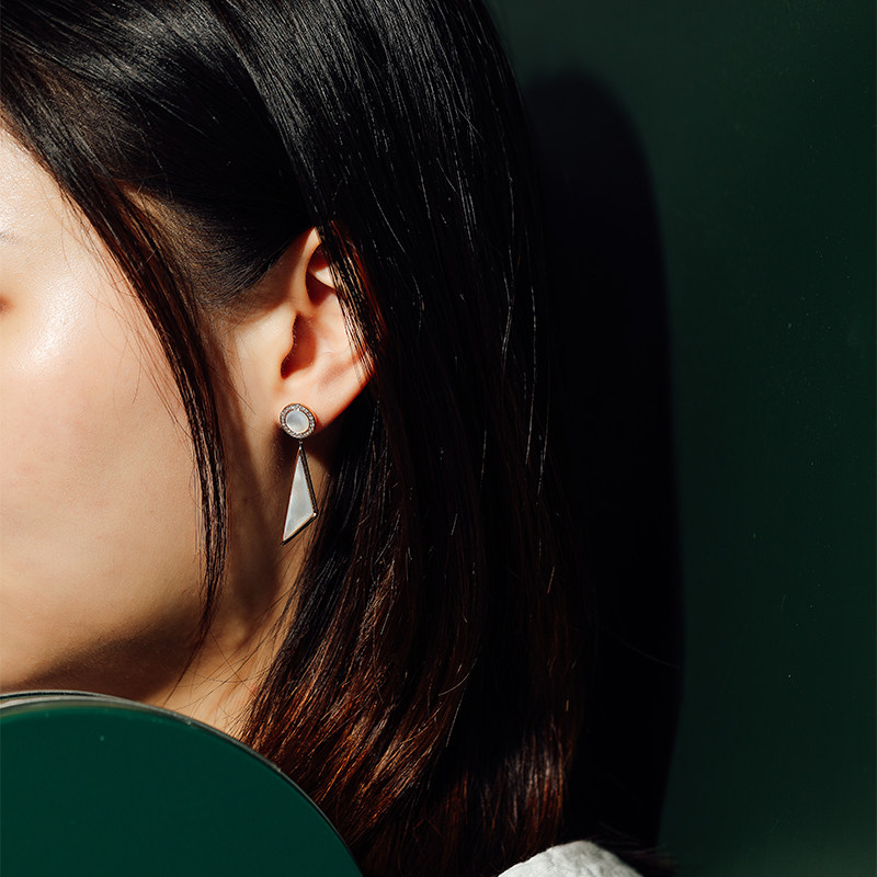 18K rose gold white mother-of-pearl earrings women's earrings long section gold diamond black agate sailing earrings birthday gift