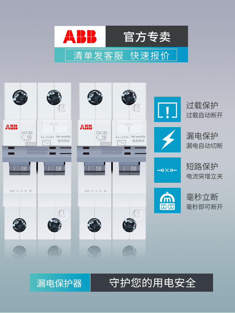 ABB leakage protector Household 220v three-phase four-wire protection switch Air conditioning air open circuit breaker Air switch