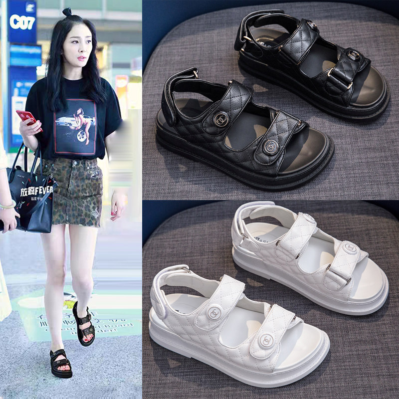 Leather sandals women's 2021 new summer all-match thick-soled platform shoes ins net red small fragrance flat women's shoes