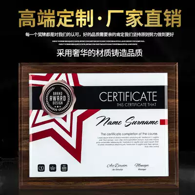 Wooden Licensee Custom Medals Customized Dealer franchise Gold Foil Certificate Walnut Honor Plaque Gift