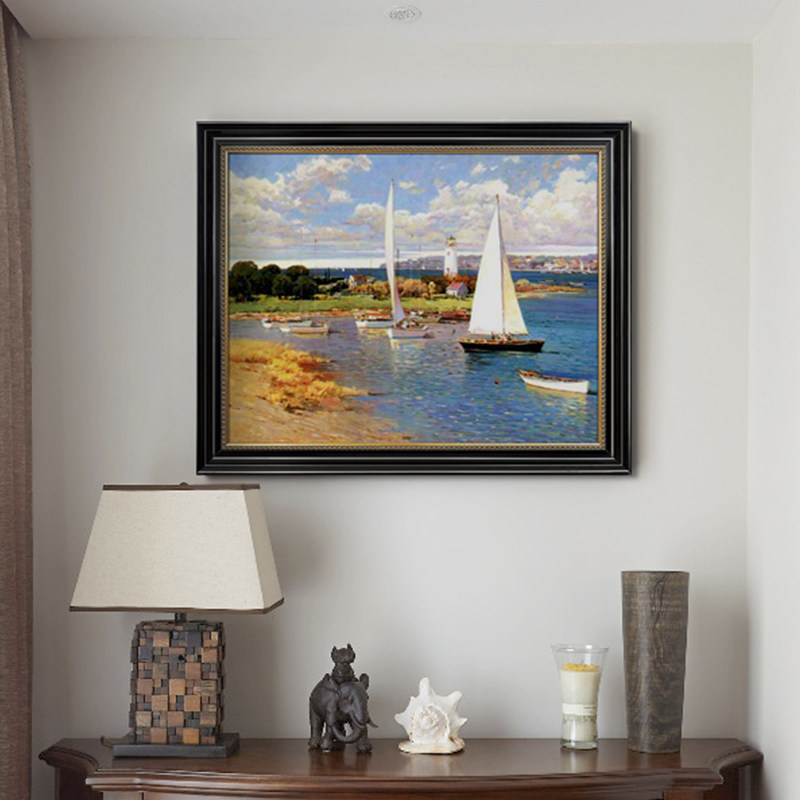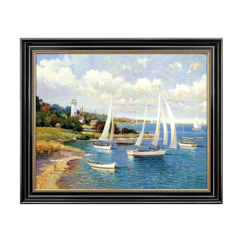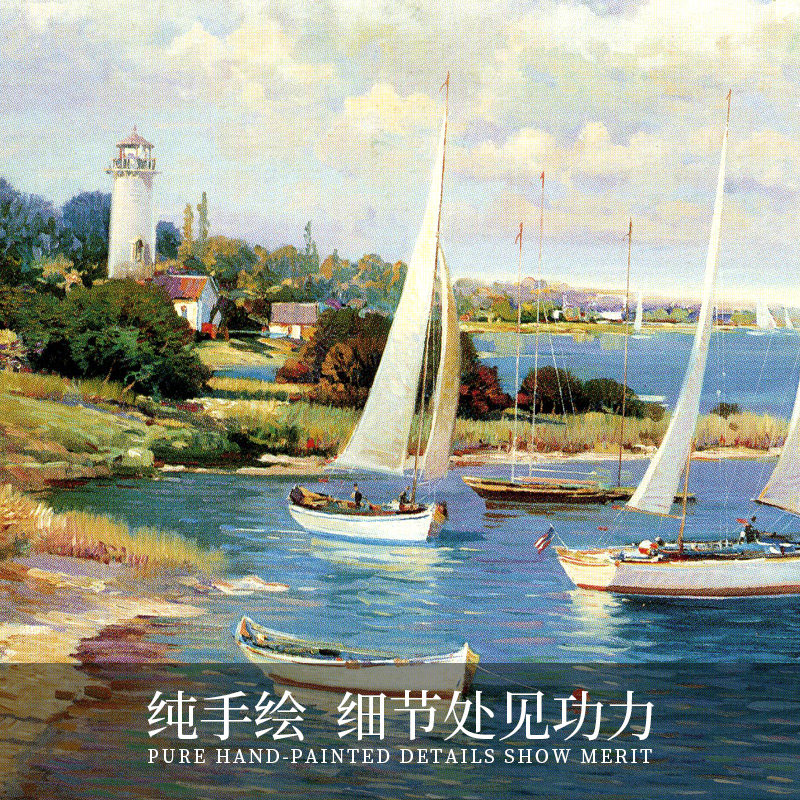 Pure Hand Painted Nordic Wind American Scenic Sailing Oil Painting A Sails Smooth Living Room Background Wall Decoration Painting Genguan Hanging Paintings