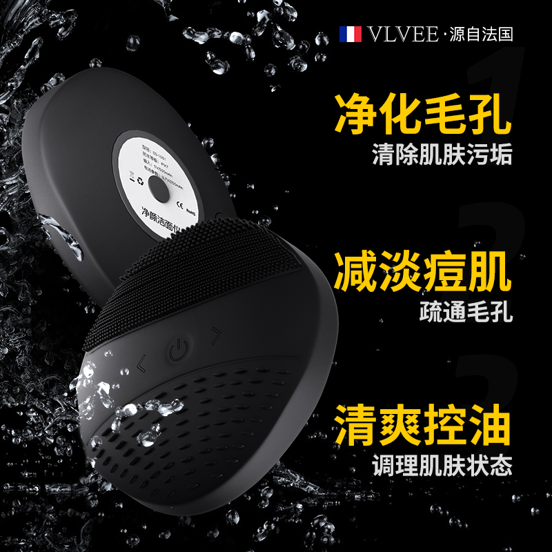 French VLVEE ultrasonic facial cleanser for men's face washing artifact cleaning pores silicone electric face washing device