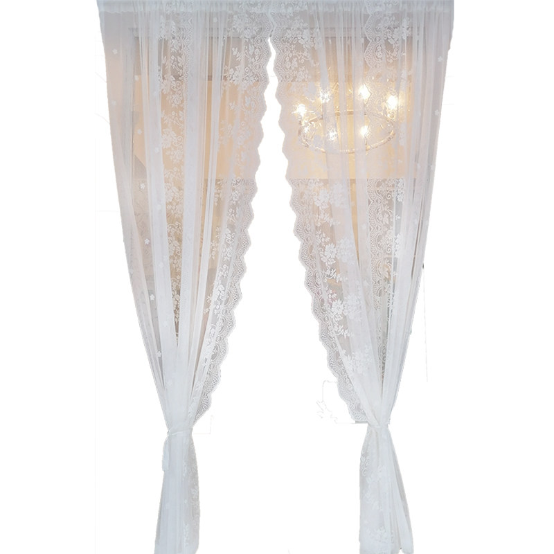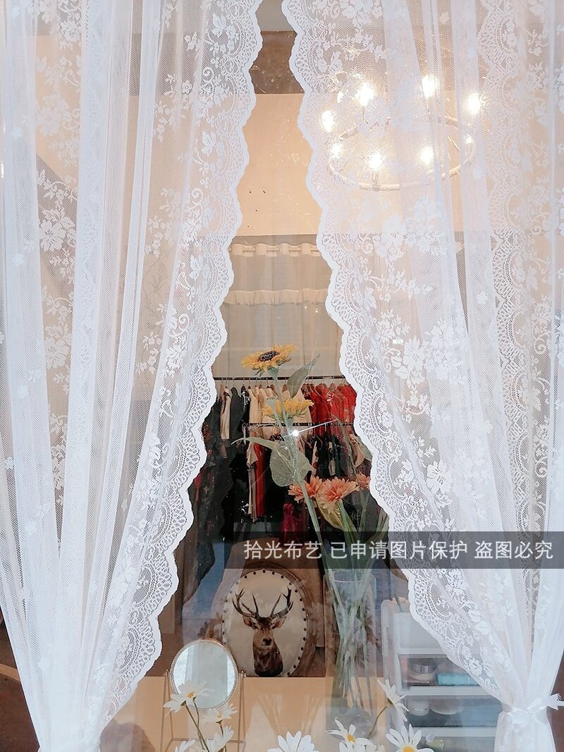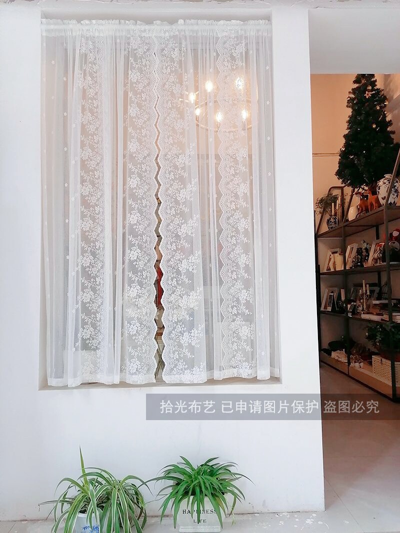 Pick up light Korean style white lace curtain window screen curtain pastoral American half curtain short curtain door curtain partition free punching installation