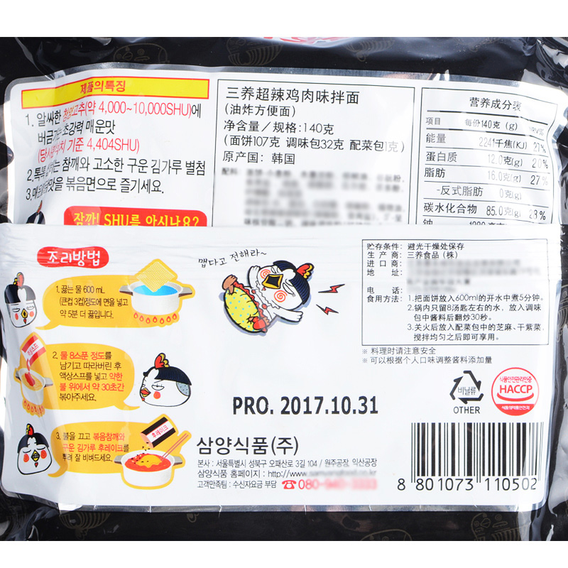 Three Raised Turkey Soup Noodle South Korea Imported Bubble Noodles Super Spicy Turkey Noodle Soup Noodle 1450 Blister Noodles 5 Lianbag